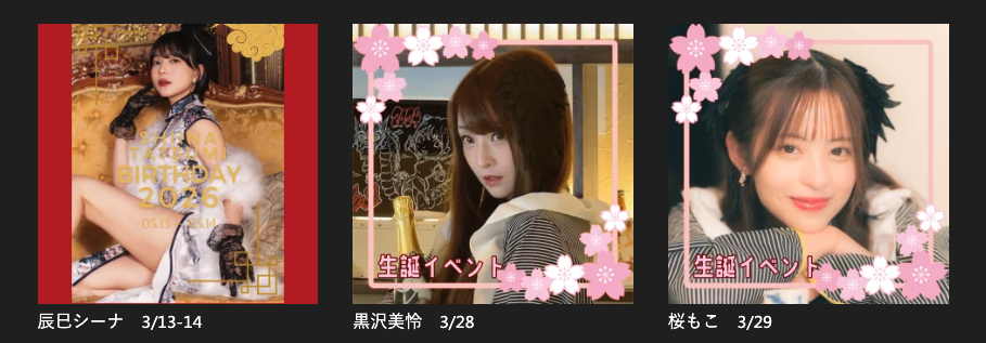 3月は、3つ(計4日)の誕生日イベントがあります。